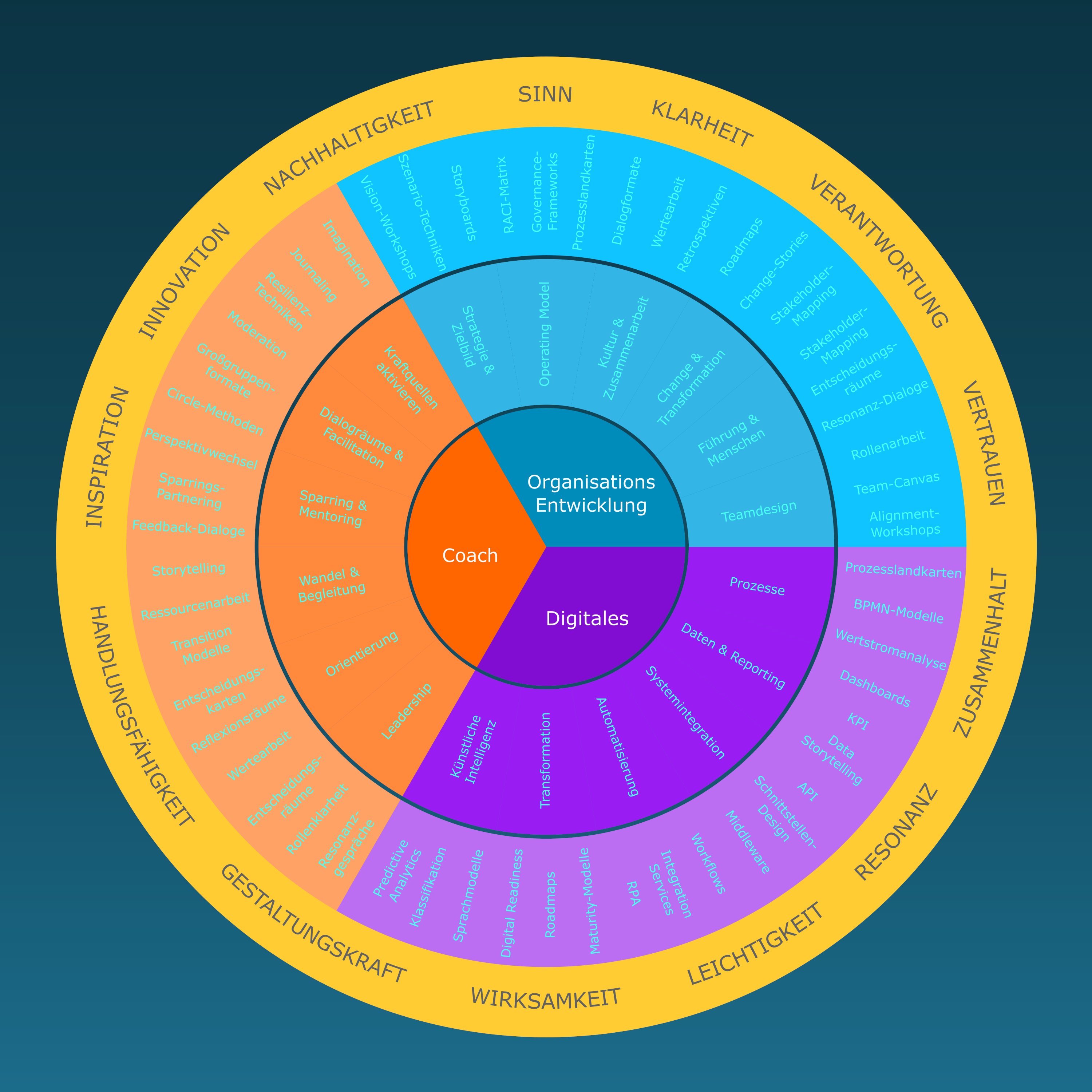 Ich verbinde systemische Organisationsentwicklung und Führung/Coaching mit digitalem und prozessualem Verständnis. Entscheidend ist das ganzheitliche Zusammenspiel: Mensch, Struktur und Technologie greifen ineinander. Gemeinsam öffnen wir Dialogräume und gestalten Veränderung – praktisch, menschlich, nachhaltig.